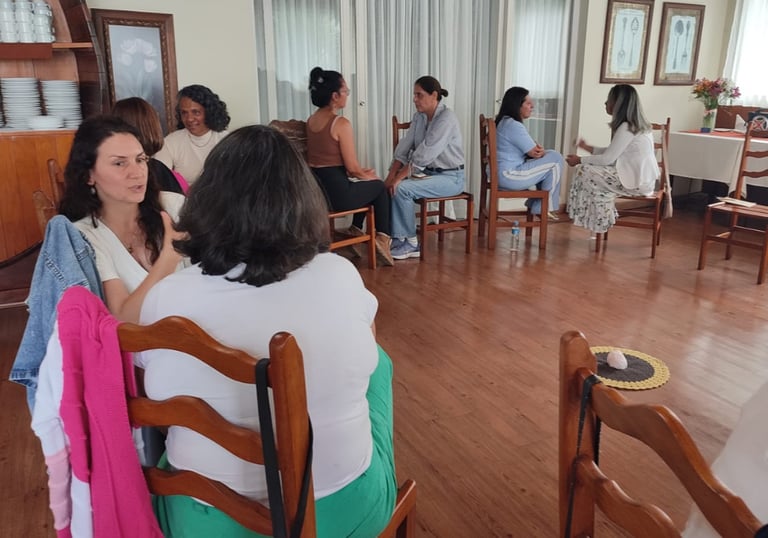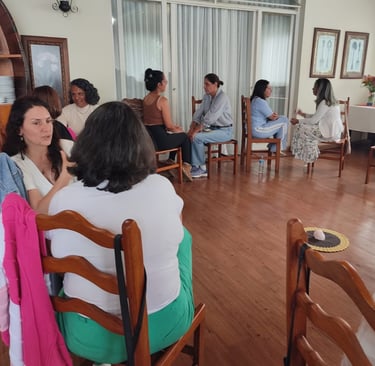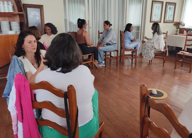Meu trabalho é acompanhar mulheres em processos de autoconhecimento e consciência, oferecendo espaços seguros de escuta, presença e reorganização interna.